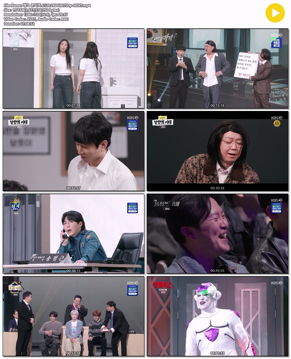 cast 동영상 개그 콘서트 E120 개그 콘서트.E120.260426.720p-NEXT persontm*** calendar_today2026.04.27 visibility7,672 download 다운로드 1개 파일 folder_zip 개그 콘서트.E120.260426.720p-NEXT.mp4 1.7 GB download