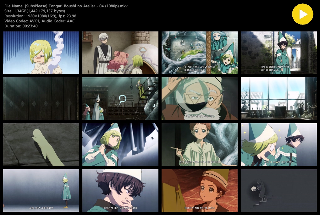 animation 애니 고깔모자의 아틀리에 1920x1080 고깔모자의 아틀리에 (2026) - 04 (1920x1080) personzz*** calendar_today2026.04.22 visibility5,206 download 다운로드 2개 파일 folder_zip [SubsPlease] Tongari Boushi no Atelier - 04 (1080p).mkv 1.3 GB download folder_zip [SubsPlease] Tongari Boushi no Atelier - 04 (1080p).srt download