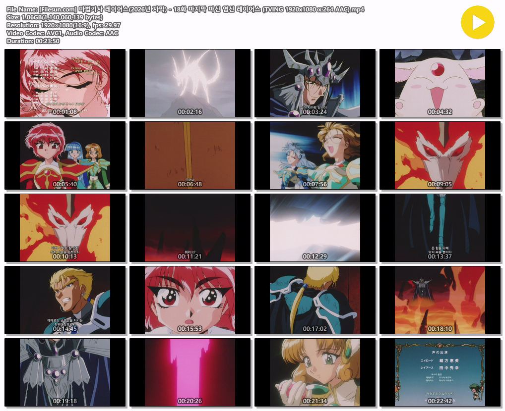 animation 애니 공식자막 마법기사 레이어스 [공식자막] 마법기사 레이어스 - 18화 마지막 마신 염신 레이어스 person이샤*** calendar_today2026.04.25 visibility7,775 download 다운로드 1개 파일 folder_zip 마법기사 레이어스(2026년 자막) - 18화 마지막 마신 염신 레이어스 (TVING 1920x1080 x.264 AAC).mp4 1.1 GB download