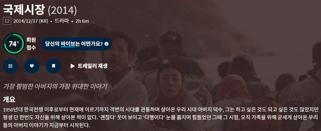 movie 영화 국제시장 가장 평범하지만 국제시장 "가장 평범하지만 누구보다 위대했던 시대의 거인" persongg*** calendar_today2026.01.01 visibility3,472 download 다운로드 1개 파일 folder_zip 국제시장.mp4 2.4 GB download