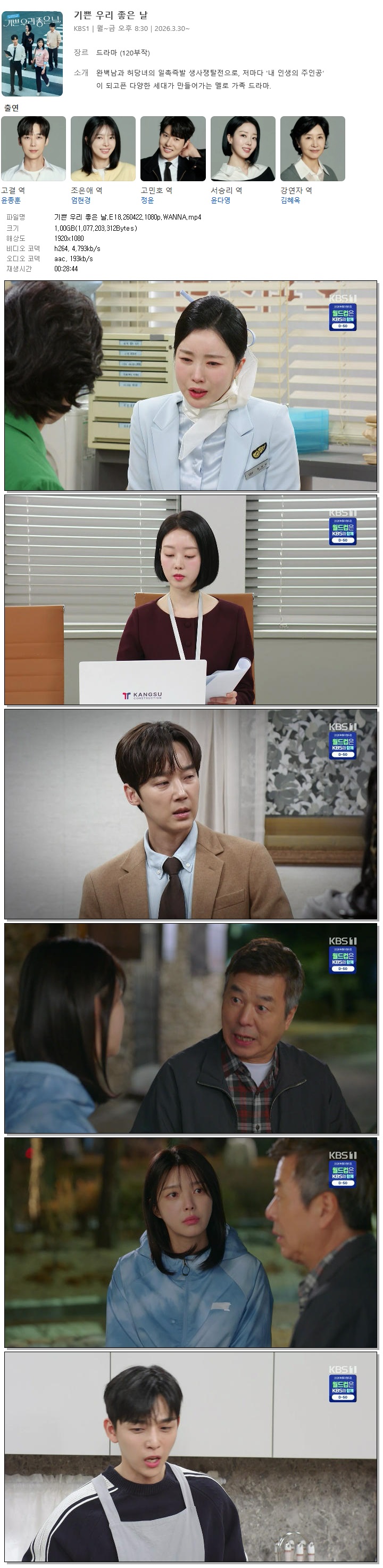 live_tv 드라마 기쁜 우리 좋은 기쁜 우리 좋은 날.E18.260422.1080p.WANNA person홀리*** calendar_today2026.04.22 visibility6,996 download 다운로드 1개 파일 folder_zip 기쁜 우리 좋은 날.E18.260422.1080p.WANNA.mp4 1.0 GB download