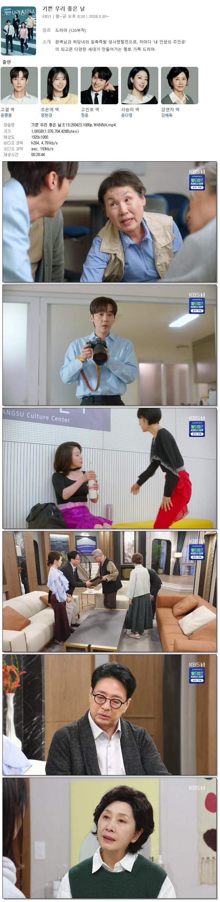 live_tv 드라마 기쁜 우리 좋은 기쁜 우리 좋은 날.E19.260423.1080p.WANNA person홀리*** calendar_today2026.04.23 visibility7,672 download 다운로드 1개 파일 folder_zip 기쁜 우리 좋은 날.E19.260423.1080p.WANNA.mp4 1.0 GB download