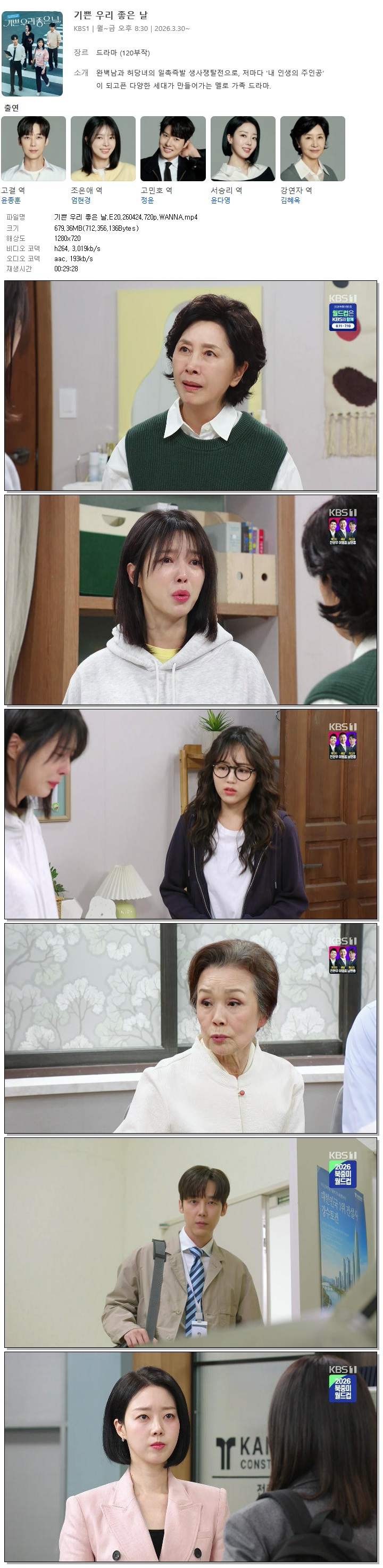 live_tv 드라마 기쁜 우리 좋은 기쁜 우리 좋은 날.E20.260424.720p.WANNA person바오*** calendar_today2026.04.25 visibility7,344 download 다운로드 1개 파일 folder_zip 기쁜 우리 좋은 날.E20.260424.720p.WANNA.mp4 679 MB download