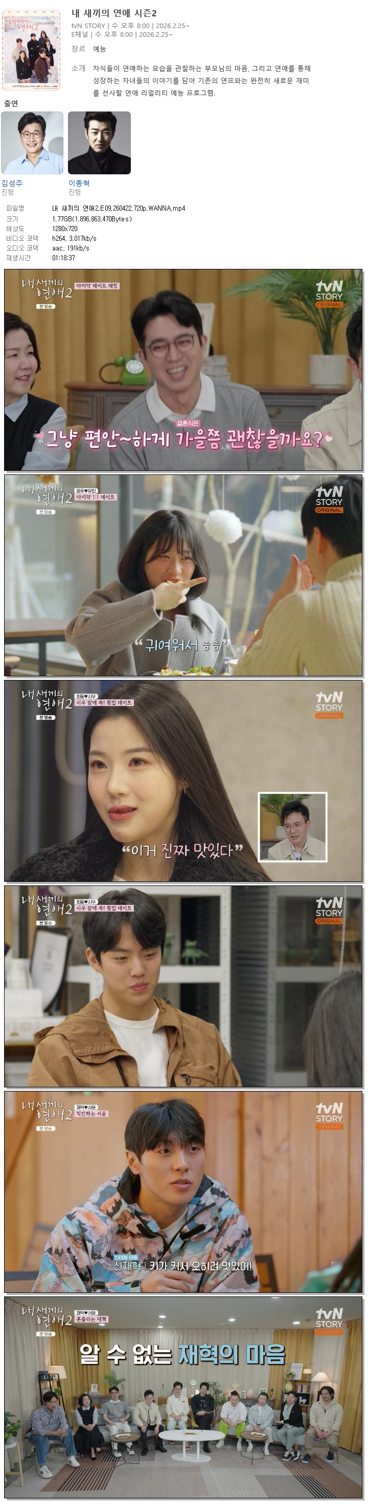 cast 동영상 새끼의 연애2 E09 내 새끼의 연애2.E09.260422.720p.WANNA person바오*** calendar_today2026.04.22 visibility7,684 download 다운로드 1개 파일 folder_zip 내 새끼의 연애2.E09.260422.720p.WANNA.mp4 1.8 GB download
