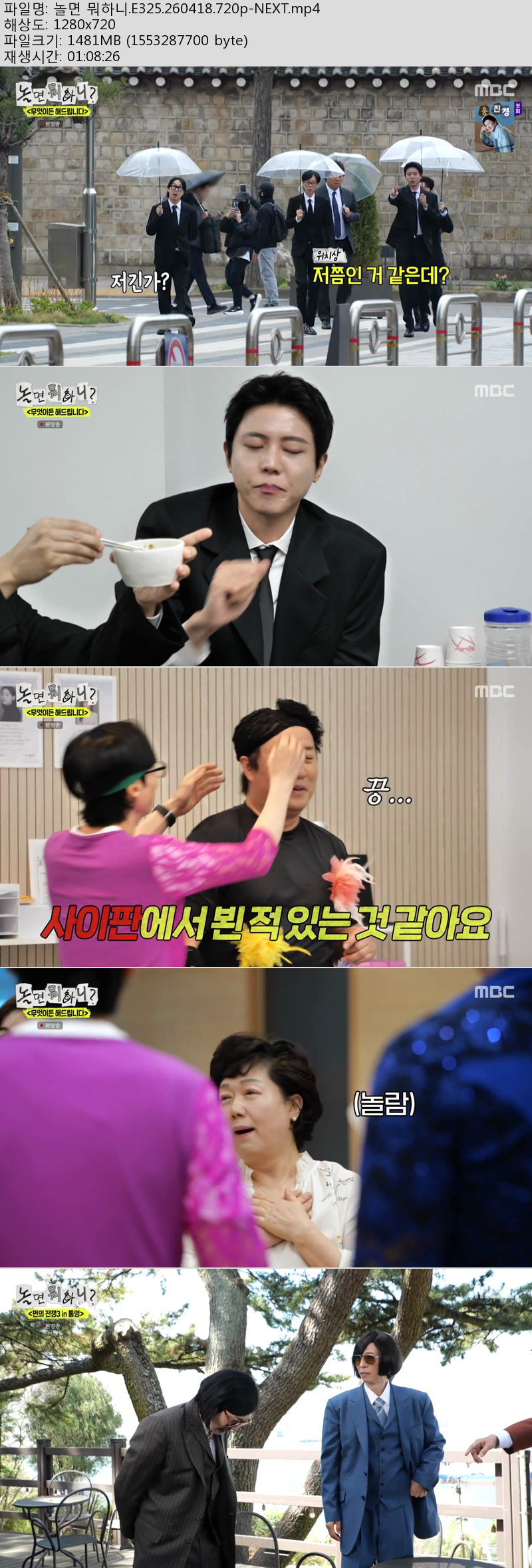cast 동영상 놀면 뭐하니 E325 놀면 뭐하니.E325.260418.720p-NEXT personkk*** calendar_today2026.04.21 visibility7,917 download 다운로드 1개 파일 folder_zip 놀면 뭐하니.E325.260418.720p-NEXT.mp4 1.4 GB download