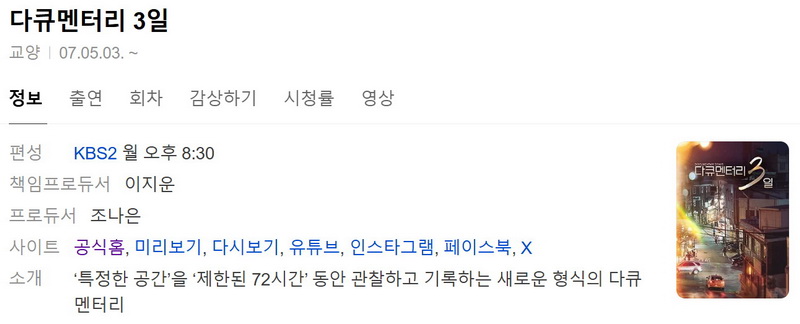 cast 동영상 다큐멘터리 3일 영남 다큐멘터리 3일 260420 영남 산불, 그 후 1년 의성군 단촌면 72시간 person로망*** calendar_today2026.04.21 visibility5,204 download 다운로드 1개 파일 folder_zip 다큐멘터리 3일 260420 영남 산불, 그 후 1년 의성군 단촌면 72시간.mkv 1.7 GB download