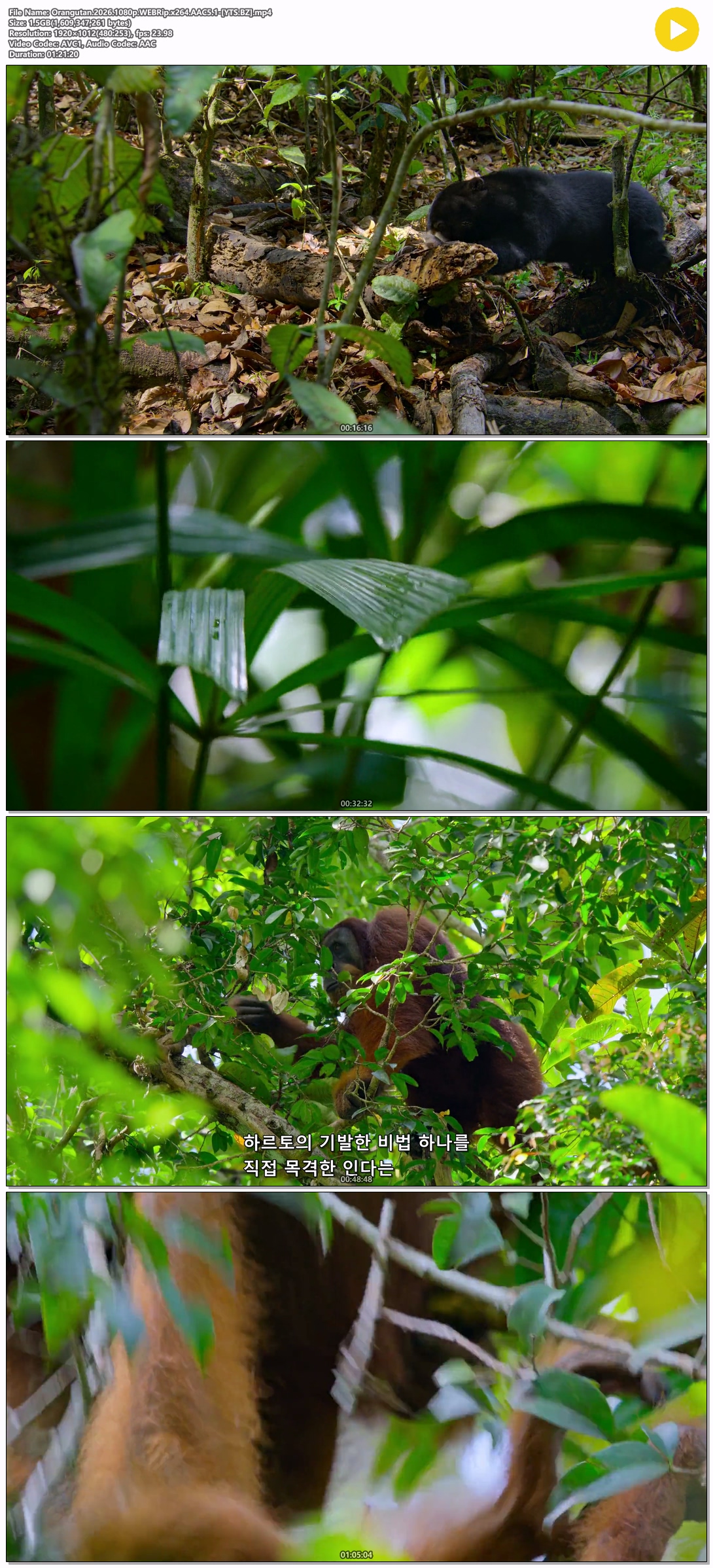 cast 동영상 다큐 오랑우탄 Orangutan [다큐] 오랑우탄.Orangutan.2026.1080p.한글자막 person정용*** calendar_today2026.04.23 visibility4,933 download 다운로드 3개 파일 folder_zip Orangutan.2026.1080p.WEBRip.x264.AAC5.1-[YTS.BZ] ENG.srt 1.5 GB download folder_zip Orangutan.2026.1080p.WEBRip.x264.AAC5.1-[YTS.BZ].mp4 download folder_zip Orangutan.2026.1080p.WEBRip.x264.AAC5.1-[YTS.BZ].srt download