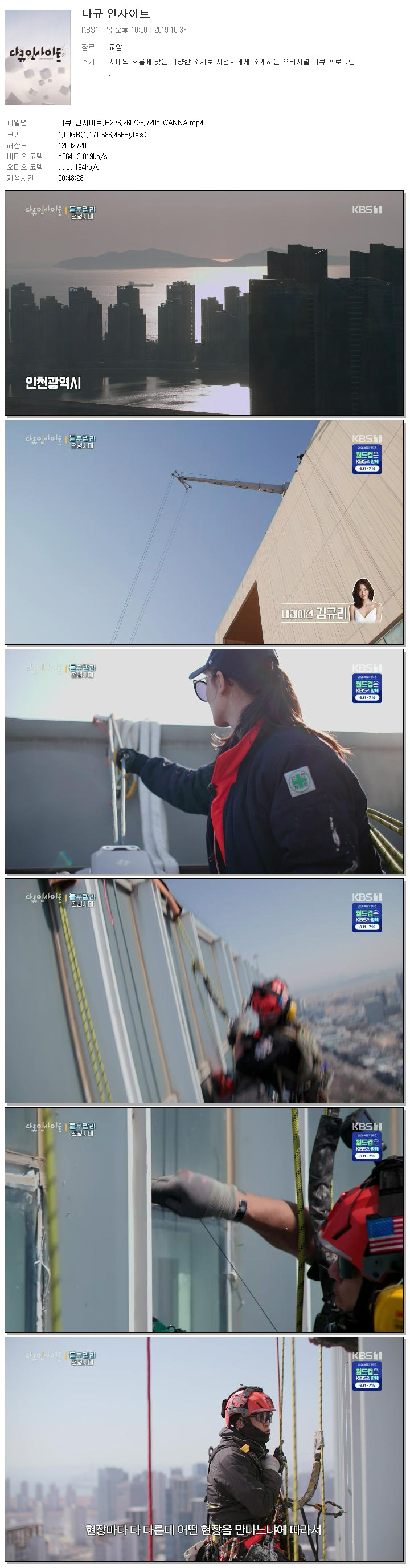 cast 동영상 다큐 인사이트 E276 다큐 인사이트.E276.260423.720p.WANNA person바오*** calendar_today2026.04.23 visibility6,080 download 다운로드 1개 파일 folder_zip 다큐 인사이트.E276.260423.720p.WANNA.mp4 1.1 GB download
