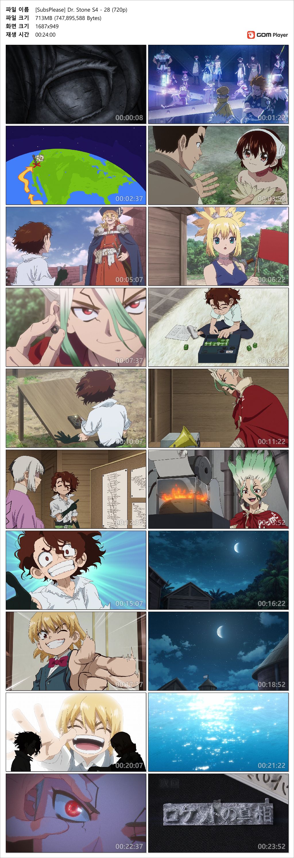 animation 애니 닥터 스톤 4기 닥터 스톤 4기 사이언스 퓨쳐 3쿨 - 28화 (1280x720 x264 AAC) person인생*** calendar_today2026.04.23 visibility4,754 download 다운로드 2개 파일 folder_zip [SubsPlease] Dr. Stone S4 - 28 (720p).mkv 713 MB download folder_zip [SubsPlease] Dr. Stone S4 - 28 (720p).srt download
