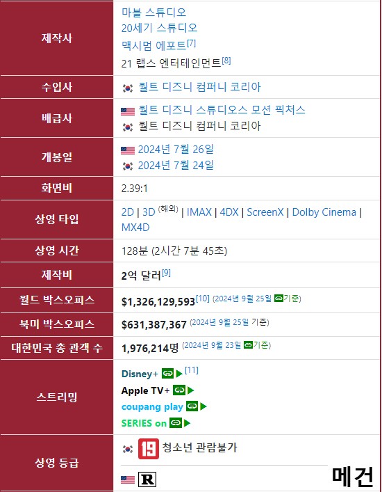 movie 영화 데드풀과 울버린 Deadpool [데드풀과 울버린] Deadpool & Wolverine. 2024 (휴 잭맨, 라이언 레이놀즈) person메건*** calendar_today2026.04.27 visibility4,458 download 다운로드 2개 파일 folder_zip 4K. 데드풀과 울버린. 2024 (파일, 제목, 스샷 도용 금지!! 작성자 메건).mkv 5.1 GB download folder_zip 4K. 데드풀과 울버린. 2024 (파일, 제목, 스샷 도용 금지!! 작성자 메건).srt download