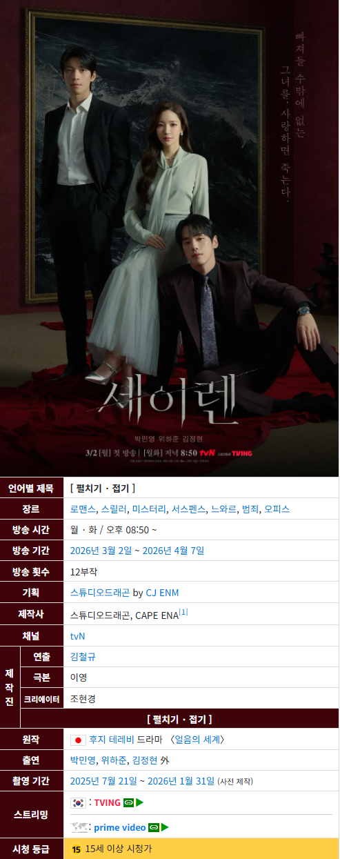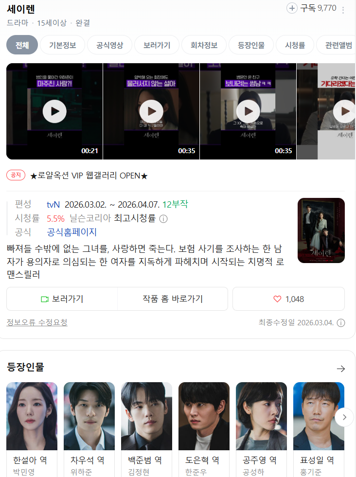 live_tv 드라마 드라마완결 세이렌 저용량 [드라마완결] 세이렌 (720P 저용량) personㅡㅡ*** calendar_today2026.04.21 visibility4,391 (직접 인코딩한 파일로,재업배포금지합니다.)소리는 영어, 한국어 입니다..자막은 내장 다국어자막이며 , 한국어도 포함되어있습니다 download 다운로드 12개 파일 folder_zip 세이렌.E01.260302.720P.(2Audio)-McD.mp4 5.3 GB download folder_zip 세이렌.E02.260303.720P.(2Audio)-McD.mp4 download folder_zip 세이렌.E03.260309.720P.(2Audio)-McD.mp4 download folder_zip 세이렌.E04.260310.720P.(2Audio)-McD.mp4 download folder_zip 세이렌.E05.260316.720P.(2Audio)-McD.mp4 download folder_zip 세이렌.E06.260317.720P.(2Audio)-McD.mp4 download folder_zip 세이렌.E07.260323.720P.(2Audio)-McD.mp4 download folder_zip 세이렌.E08.260324.720P.(2Audio)-McD.mp4 download folder_zip 세이렌.E09.260330.720P.(2Audio)-McD.mp4 download folder_zip 세이렌.E10.260331.720P.(2Audio)-McD.mp4 download folder_zip 세이렌.E11.260406.720P.(2Audio)-McD.mp4 download folder_zip 세이렌.E12.END.260407.720P.(2Audio)-McD.mp4 download