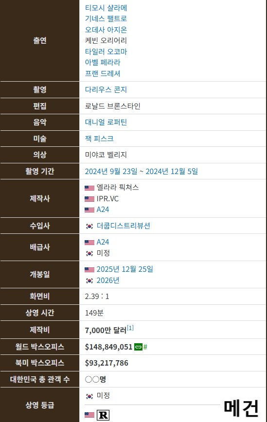 movie 영화 마티 슈프림 Marty [마티 슈프림] Marty Supreme. 2025 (티모시 샬라메 주연) person메건*** calendar_today2026.04.27 visibility6,939 download 다운로드 1개 파일 folder_zip 마티 슈프림. 2026 (파일, 제목, 스샷 도용 금지!! 작성자 메건).mp4 3.3 GB download