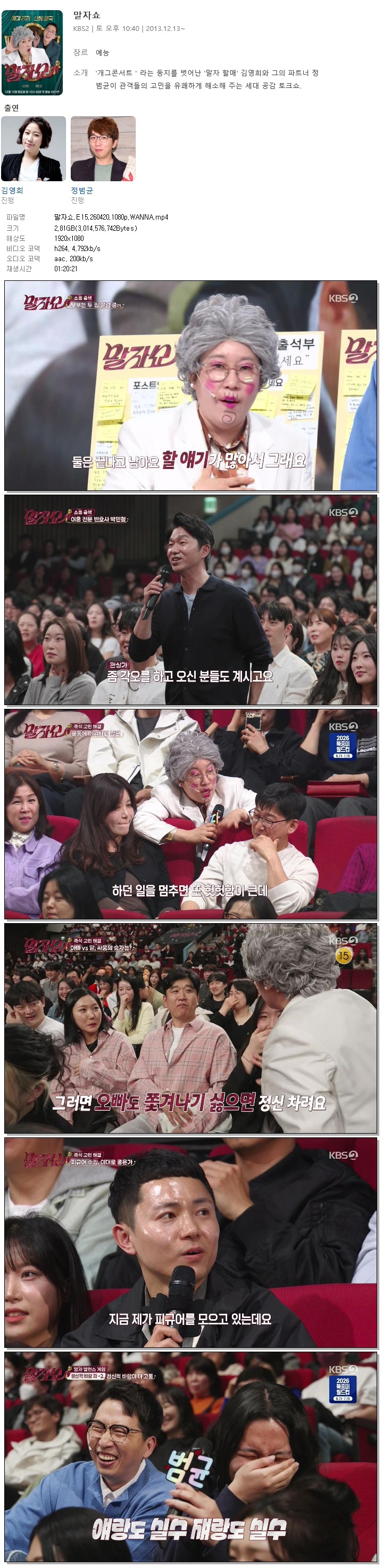 cast 동영상 말자쇼 E15 WANNA 말자쇼.E15.260420.1080p.WANNA person홀리*** calendar_today2026.04.20 visibility6,785 download 다운로드 1개 파일 folder_zip 말자쇼.E15.260420.1080p.WANNA.mp4 2.8 GB download