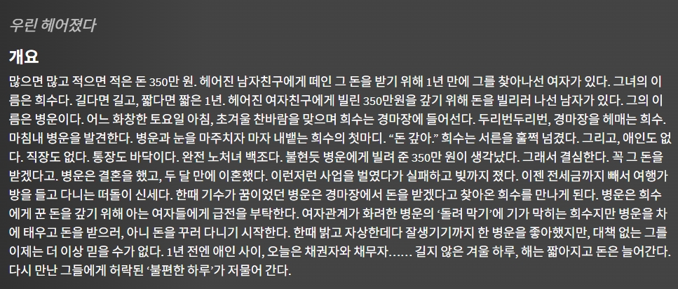 movie 영화 멋진 하루 우린 멋진 하루 "우린 헤어졌다" persongg*** calendar_today2026.04.27 visibility3,009 download 다운로드 1개 파일 folder_zip 멋진 하루.mkv 1.7 GB download