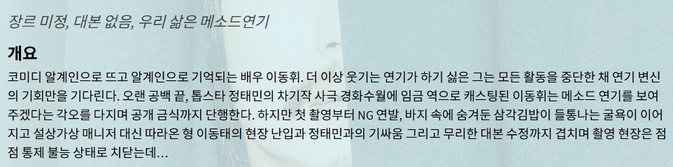 movie 영화 메소드연기 장르 미정 메소드연기 (2026) 장르 미정, 대본 없음, 우리 삶은 메소드연기 persongg*** calendar_today2026.04.22 visibility6,320 download 다운로드 1개 파일 folder_zip 메소드연기 (2026).mkv 3.3 GB download