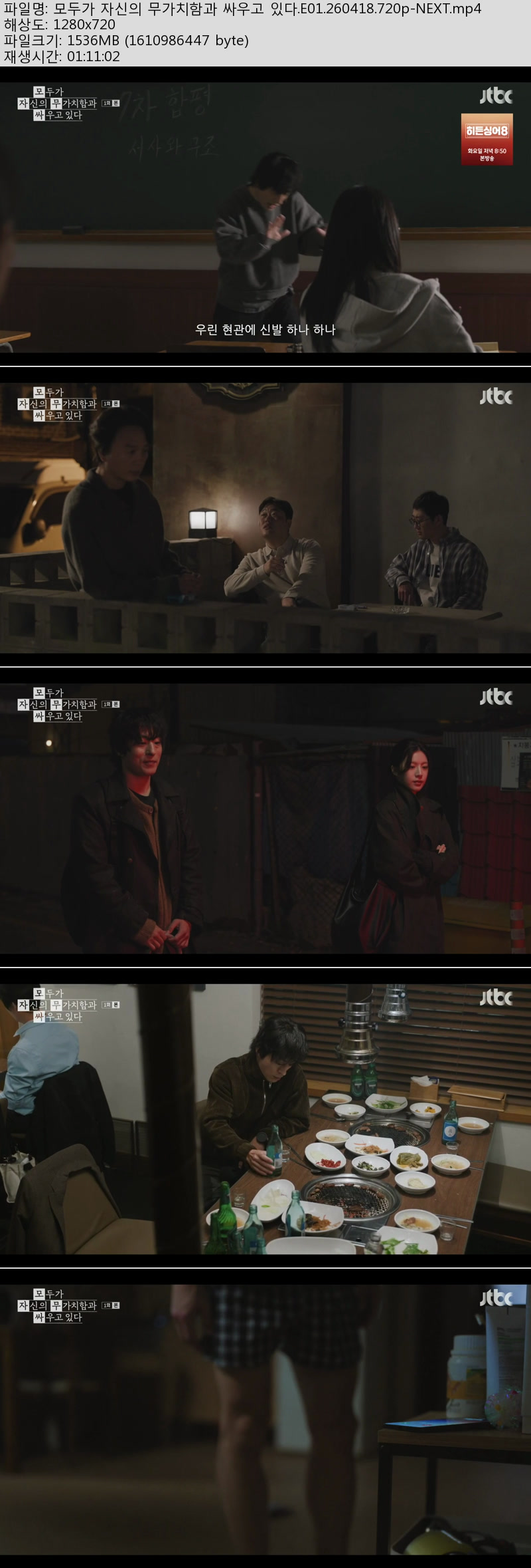 live_tv 드라마 모두가 자신의 무가치함과 모두가 자신의 무가치함과 싸우고 있다.1~2회(이번주 방송).260418~19.720p-NEXT personkk*** calendar_today2026.04.21 visibility3,655 download 다운로드 2개 파일 folder_zip 모두가 자신의 무가치함과 싸우고 있다.E01.260418.720p-NEXT.mp4 2.9 GB download folder_zip 모두가 자신의 무가치함과 싸우고 있다.E02.260419.720p-NEXT.mp4 download