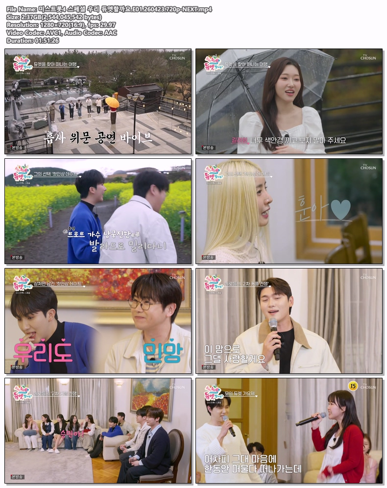 cast 동영상 미스트롯4 스페셜 우리 미스트롯4 스페셜 우리 듀엣할까요.E01.260423.720p-NEXT personyo*** calendar_today2026.04.24 visibility6,024 download 다운로드 1개 파일 folder_zip 미스트롯4 스페셜 우리 듀엣할까요.E01.260423.720p-NEXT.mp4 2.4 GB download