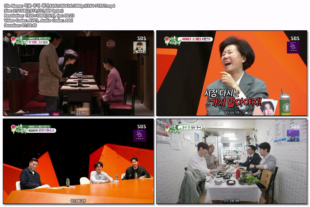 cast 동영상 미운 우리 새끼 미운 우리 새끼.E492.260426.1080p.H264-F1RST personhe*** calendar_today2026.04.27 visibility6,626 download 다운로드 1개 파일 folder_zip 미운 우리 새끼.E492.260426.1080p.H264-F1RST.mp4 2.7 GB download