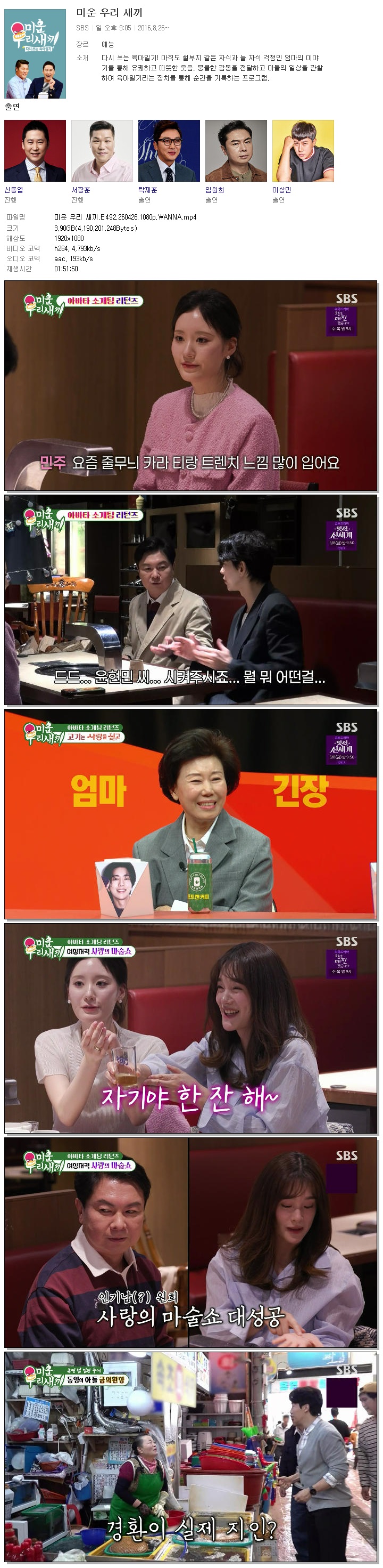 cast 동영상 미운 우리 새끼 미운 우리 새끼.E492.260426.1080p.WANNA person홀리*** calendar_today2026.04.27 visibility6,719 download 다운로드 1개 파일 folder_zip 미운 우리 새끼.E492.260426.1080p.WANNA.mp4 3.9 GB download