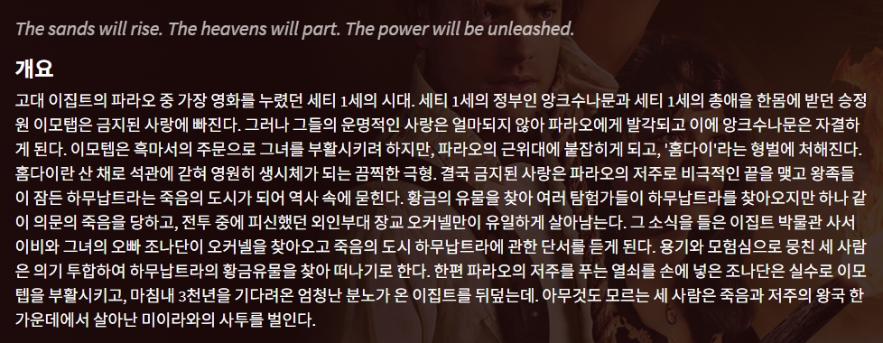 movie 영화 미이라 부활한 이모텝의 미이라 "부활한 이모텝의 분노! 황금을 찾는 탐험대와 죽음의 도시 하무납트라의 처절한 사투" persongg*** calendar_today2026.04.22 visibility3,320 download 다운로드 1개 파일 folder_zip 미이라.mkv 4.0 GB download