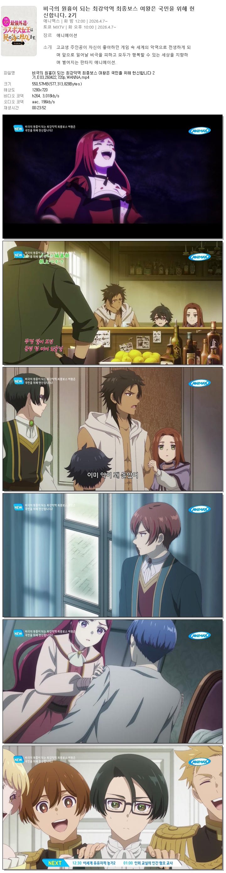 animation 애니 비극의 원흉이 되는 비극의 원흉이 되는 최강악역 최종보스 여왕은 국민을 위해 헌신합니다 2기.E03.260422.720p.WANNA person바오*** calendar_today2026.04.21 visibility6,652 download 다운로드 1개 파일 folder_zip 비극의 원흉이 되는 최강악역 최종보스 여왕은 국민을 위해 헌신합니다 2기.E03.260422.720p.WANNA.mp4 551 MB download
