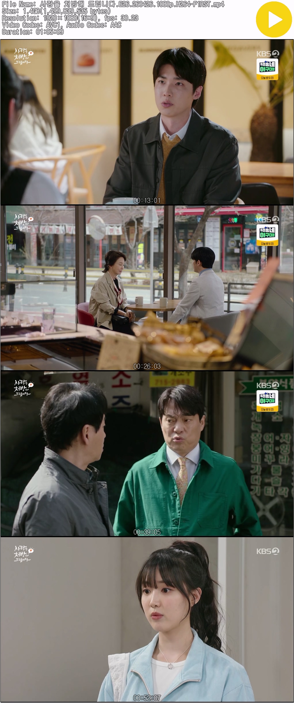 live_tv 드라마 사랑을 처방해 드립니다 사랑을 처방해 드립니다.E26.260426.1080p.H264-F1RST personoh*** calendar_today2026.04.27 visibility3,505 download 다운로드 1개 파일 folder_zip 사랑을 처방해 드립니다.E26.260426.1080p.H264-F1RST.mp4 1.4 GB download