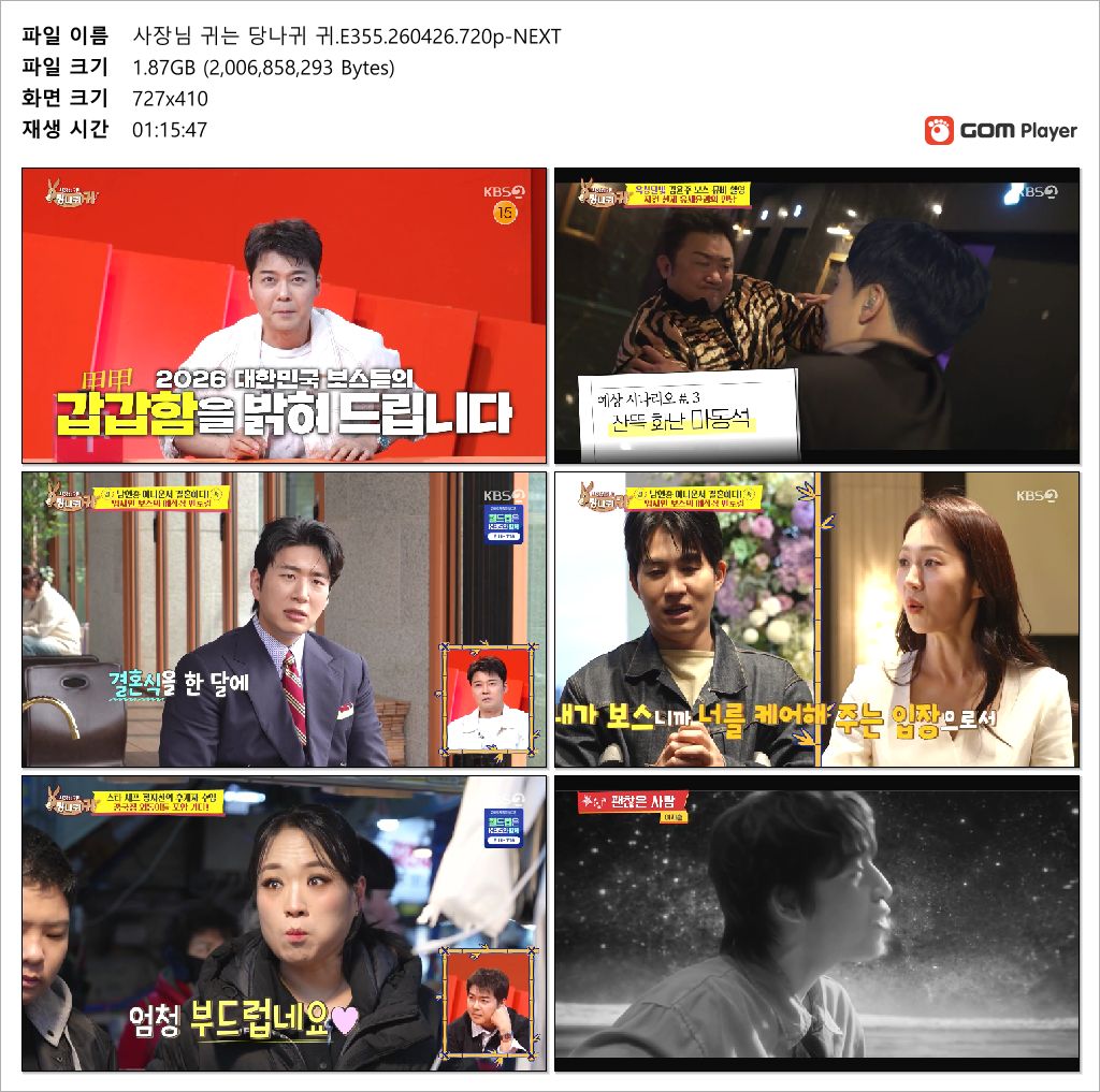 cast 동영상 사장님 귀는 당나귀 사장님 귀는 당나귀 귀.E355.260426.720p-NEXT persongm*** calendar_today2026.04.27 visibility7,609 download 다운로드 1개 파일 folder_zip 사장님 귀는 당나귀 귀.E355.260426.720p-NEXT.mp4 1.9 GB download