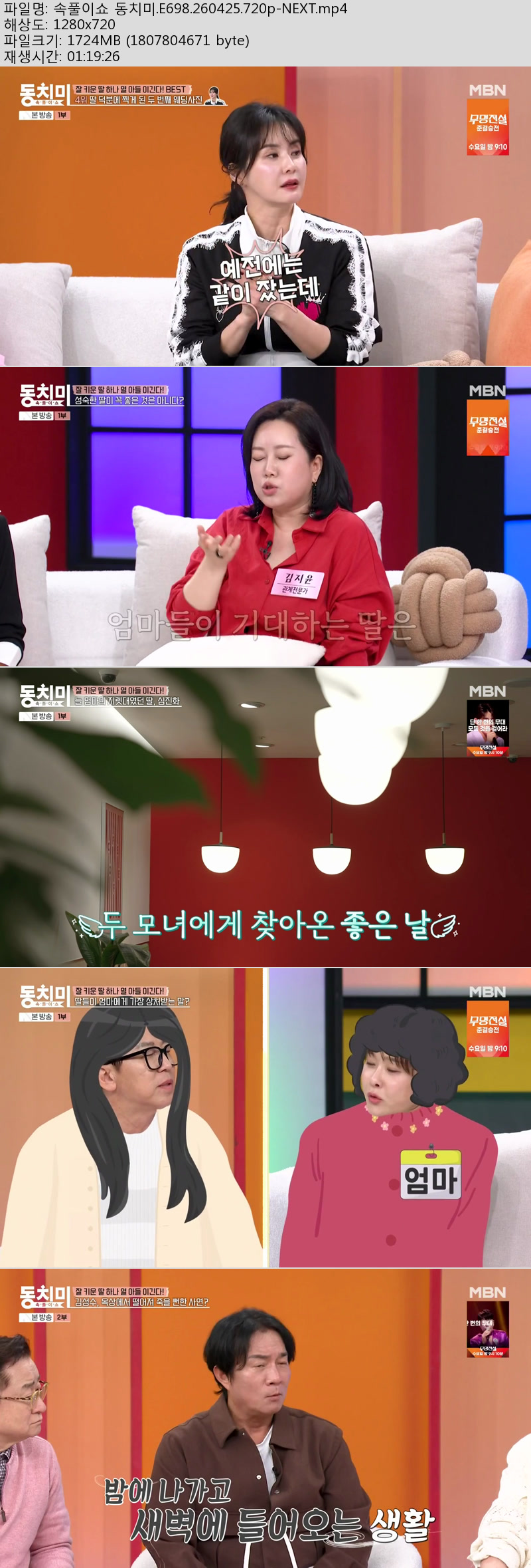 cast 동영상 속풀이쇼 동치미 E698 속풀이쇼 동치미.E698.260425.720p-NEXT person켓츠*** calendar_today2026.04.27 visibility7,244 download 다운로드 1개 파일 folder_zip 속풀이쇼 동치미.E698.260425.720p-NEXT.mp4 1.7 GB download