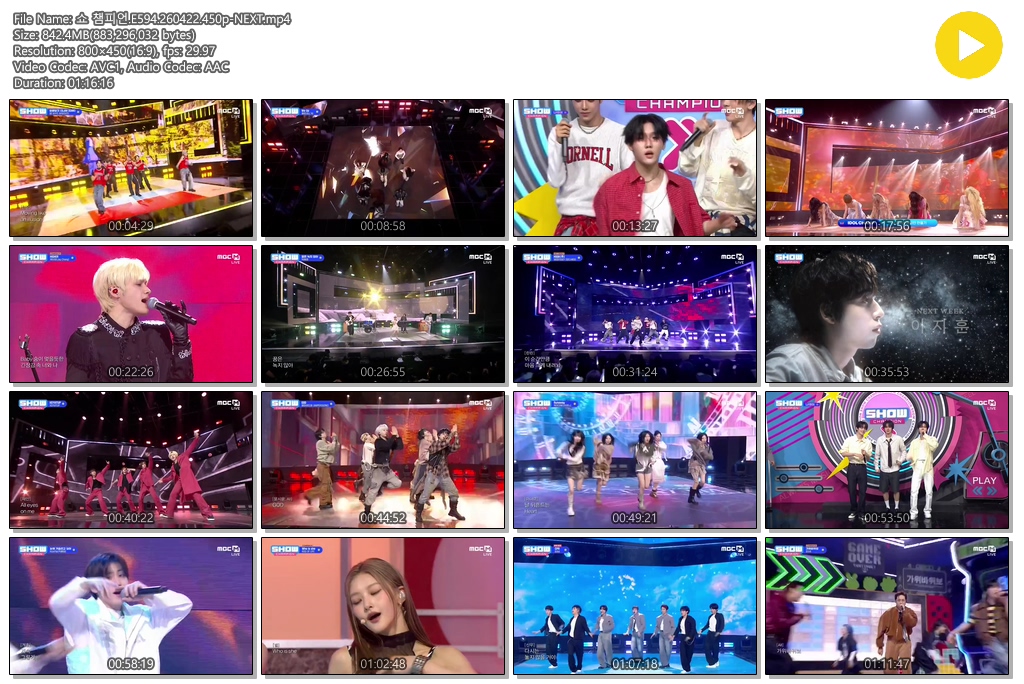 cast 동영상 챔피언 E594 NEXT 쇼 챔피언.E594.260422.450p-NEXT personse*** calendar_today2026.04.22 visibility3,300 download 다운로드 1개 파일 folder_zip 쇼 챔피언.E594.260422.450p-NEXT.mp4 842 MB download