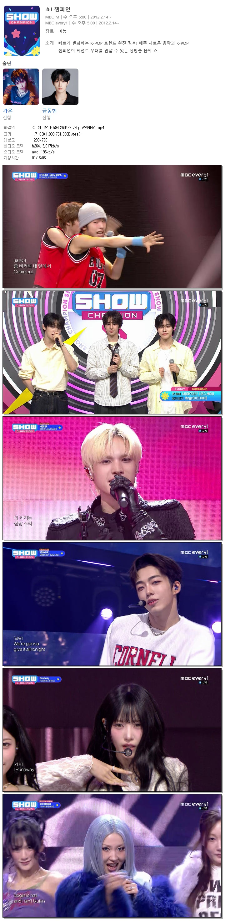 cast 동영상 챔피언 E594 WANNA 쇼 챔피언.E594.260422.720p.WANNA person바오*** calendar_today2026.04.22 visibility4,295 download 다운로드 1개 파일 folder_zip 쇼 챔피언.E594.260422.720p.WANNA.mp4 1.7 GB download