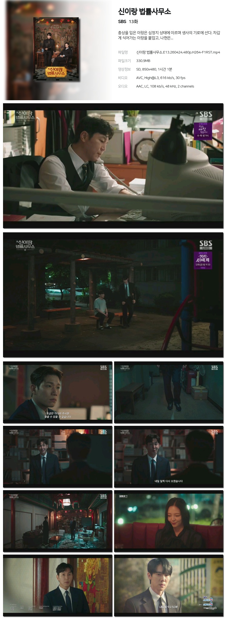 live_tv 드라마 신이랑 법률사무소 E13 신이랑 법률사무소.E13.260424.480p.H264-F1RST person네온*** calendar_today2026.04.25 visibility3,954 download 다운로드 1개 파일 folder_zip 신이랑 법률사무소.E13.260424.480p.H264-F1RST.mp4 331 MB download