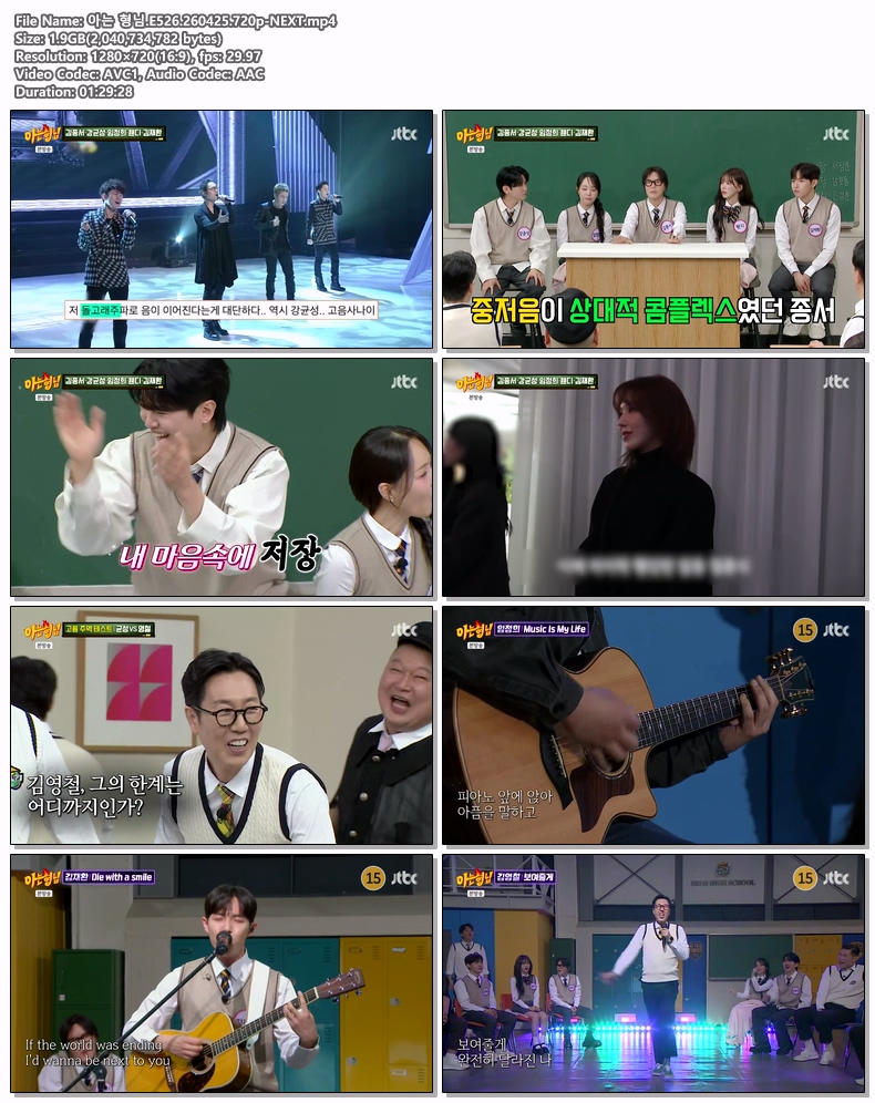 cast 동영상 아는 형님 E526 아는 형님.E526.260425.720p-NEXT personyo*** calendar_today2026.04.27 visibility3,040 download 다운로드 1개 파일 folder_zip 아는 형님.E526.260425.720p-NEXT.mp4 1.9 GB download