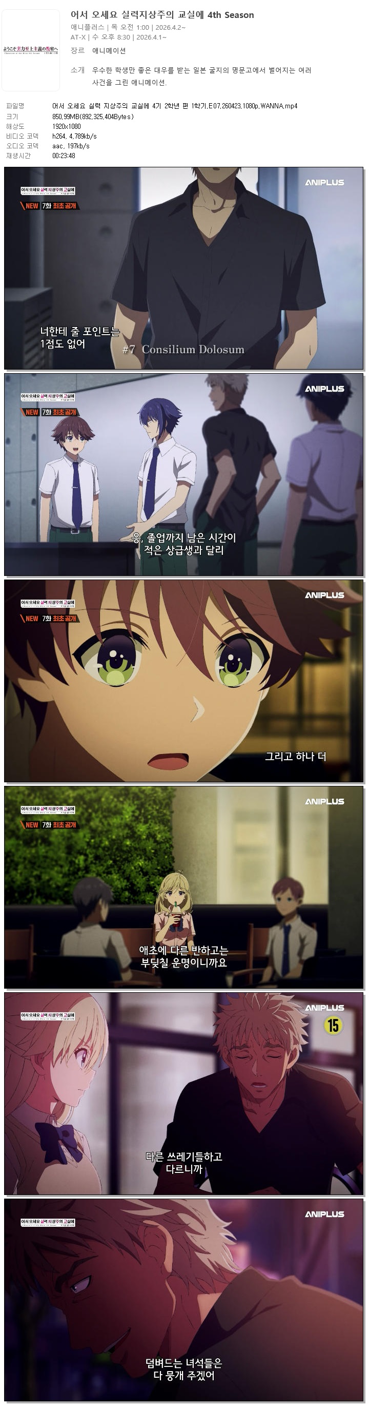 animation 애니 어서 오세요 실력 어서 오세요 실력 지상주의 교실에 4기 2학년 편 1학기.E07.260423.1080p.WANNA person홀리*** calendar_today2026.04.22 visibility4,658 download 다운로드 1개 파일 folder_zip 어서 오세요 실력 지상주의 교실에 4기 2학년 편 1학기.E07.260423.1080p.WANNA.mp4 851 MB download