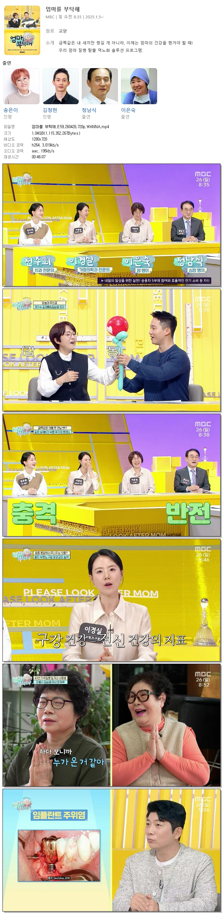 cast 동영상 엄마를 부탁해 E59 엄마를 부탁해.E59.260426.720p.WANNA person바오*** calendar_today2026.04.27 visibility3,113 download 다운로드 1개 파일 folder_zip 엄마를 부탁해.E59.260426.720p.WANNA.mp4 1.0 GB download