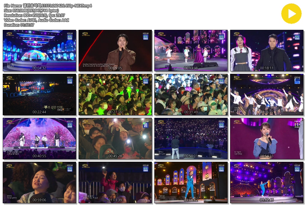 cast 동영상 열린음악회 E1573 NEXT 열린음악회.E1573.260426.450p-NEXT personse*** calendar_today2026.04.27 visibility6,068 download 다운로드 1개 파일 folder_zip 열린음악회.E1573.260426.450p-NEXT.mp4 856 MB download