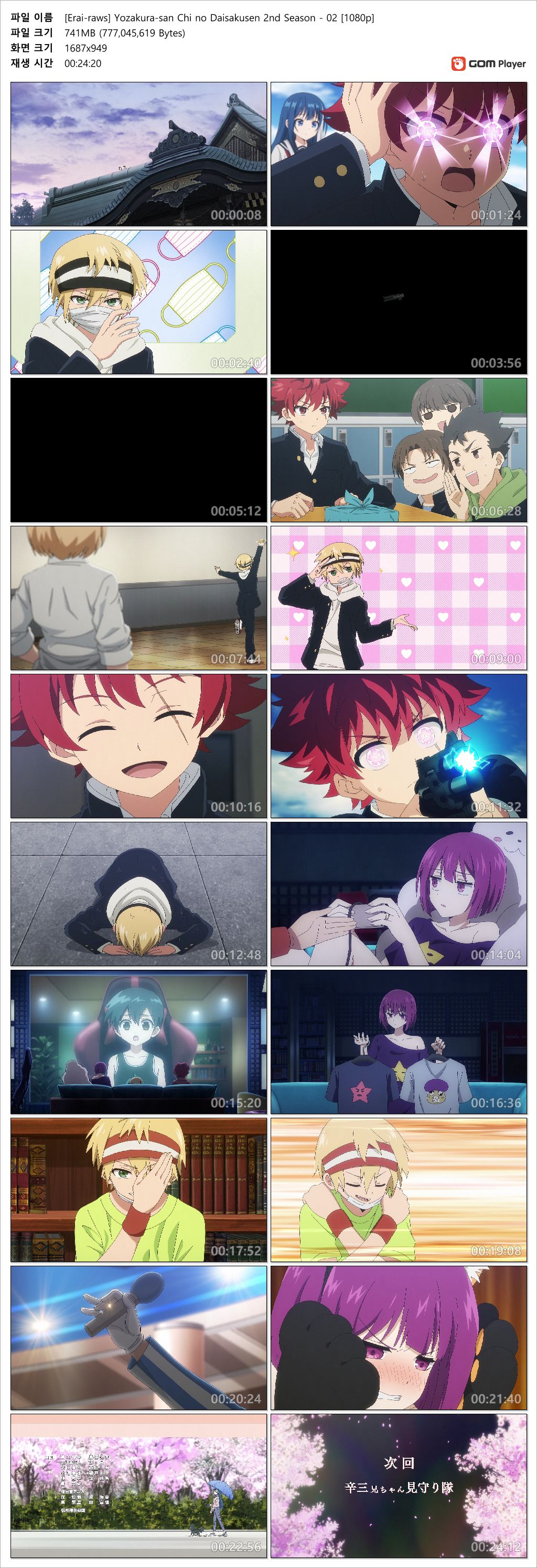 animation 애니 요자쿠라 일가의 대작전 요자쿠라 일가의 대작전 2기 - 02화 (1920x1080 x264 AAC) person인생*** calendar_today2026.04.20 visibility6,270 download 다운로드 2개 파일 folder_zip [Erai-raws] Yozakura-san Chi no Daisakusen 2nd Season - 02 [1080p].mkv 741 MB download folder_zip [Erai-raws] Yozakura-san Chi no Daisakusen 2nd Season - 02 [1080p].smi download
