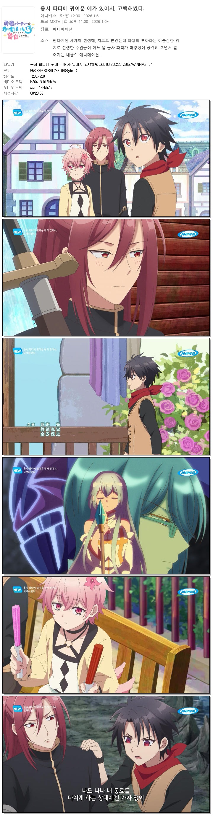 animation 애니 용사 파티에 귀여운 용사 파티에 귀여운 애가 있어서 고백해봤다.E08.260225.720p.WANNA person바오*** calendar_today2026.01.01 visibility4,215 download 다운로드 1개 파일 folder_zip 용사 파티에 귀여운 애가 있어서 고백해봤다.E08.260225.720p.WANNA.mp4 553 MB download