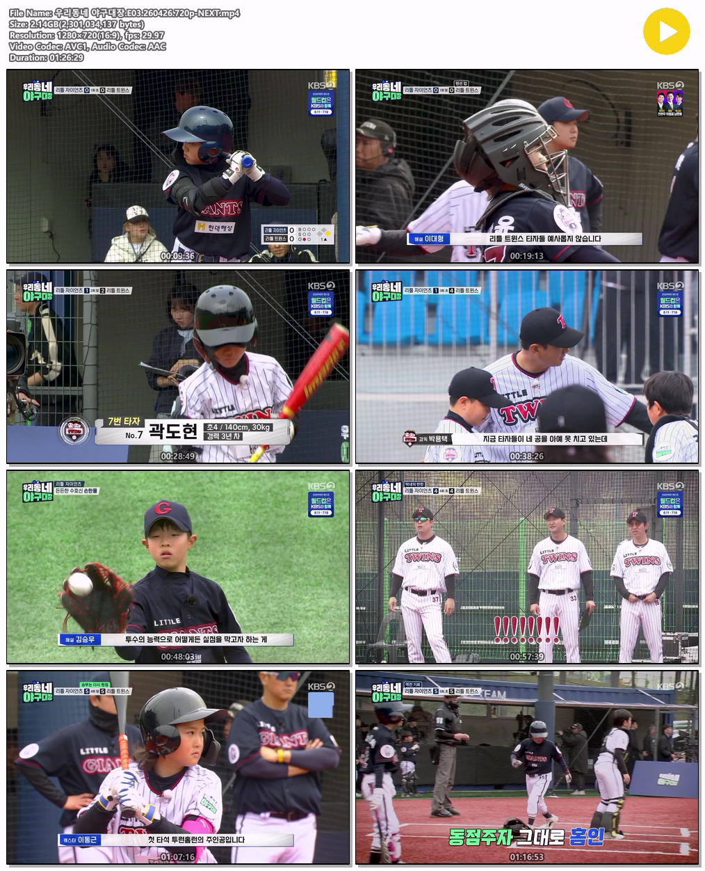 cast 동영상 우리동네 야구대장 E03 우리동네 야구대장.E03.260426.720p-NEXT persontm*** calendar_today2026.04.27 visibility4,236 download 다운로드 1개 파일 folder_zip 우리동네 야구대장.E03.260426.720p-NEXT.mp4 2.1 GB download