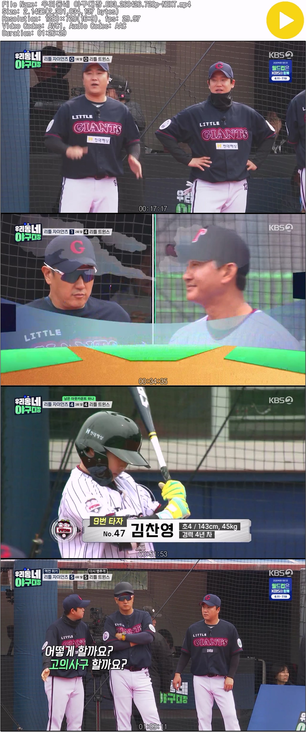 cast 동영상 우리동네 야구대장 E03 우리동네 야구대장.E03.260426.720p-NEXT personoh*** calendar_today2026.04.27 visibility6,713 download 다운로드 1개 파일 folder_zip 우리동네 야구대장.E03.260426.720p-NEXT.mp4 2.1 GB download
