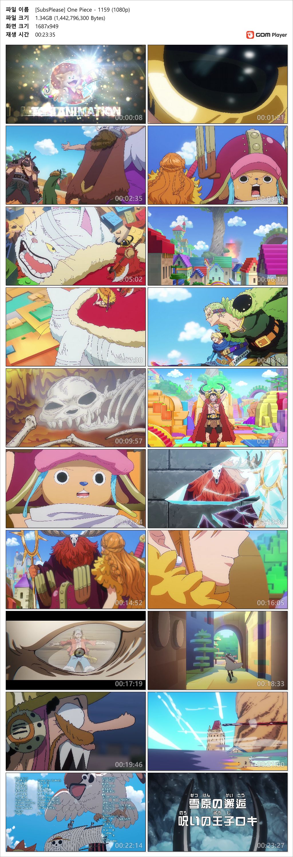 animation 애니 원피스 1159화 ONE 원피스 1159화 - ONE PIECE 1159 (1920x1080 x264 AAC) person인생*** calendar_today2026.04.27 visibility6,372 download 다운로드 2개 파일 folder_zip [SubsPlease] One Piece - 1159 (1080p).mkv 1.3 GB download folder_zip [SubsPlease] One Piece - 1159 (1080p).smi download