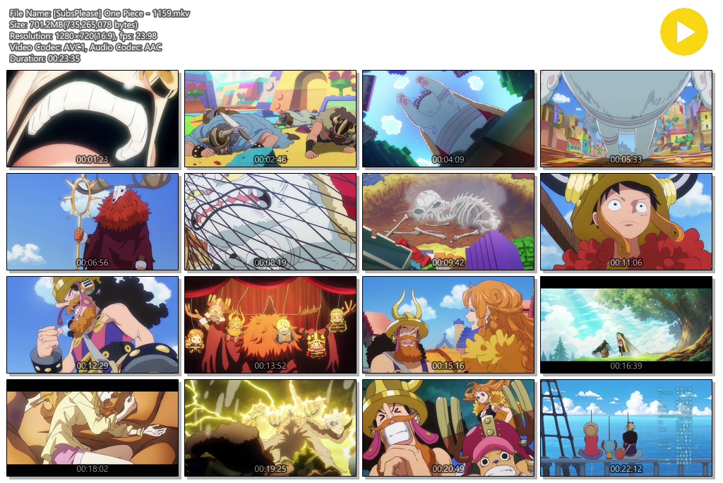 animation 애니 원피스 1280x720 SubsPlease 원피스 - 1159 (1280x720) personse*** calendar_today2026.04.27 visibility7,266 download 다운로드 2개 파일 folder_zip [SubsPlease] One Piece - 1159.mkv 701 MB download folder_zip [SubsPlease] One Piece - 1159.smi download