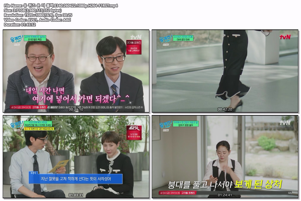 cast 동영상 퀴즈 블럭 E340 유 퀴즈 온 더 블럭.E340.260422.1080p.H264-F1RST personhe*** calendar_today2026.04.22 visibility6,595 download 다운로드 1개 파일 folder_zip 유 퀴즈 온 더 블럭.E340.260422.1080p.H264-F1RST.mp4 3.7 GB download