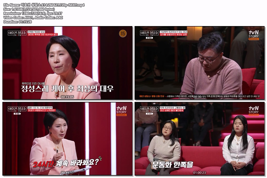 cast 동영상 이호선 상담소 E14 이호선 상담소.E14.260421.720p-NEXT personhe*** calendar_today2026.04.21 visibility6,892 download 다운로드 1개 파일 folder_zip 이호선 상담소.E14.260421.720p-NEXT.mp4 1.6 GB download