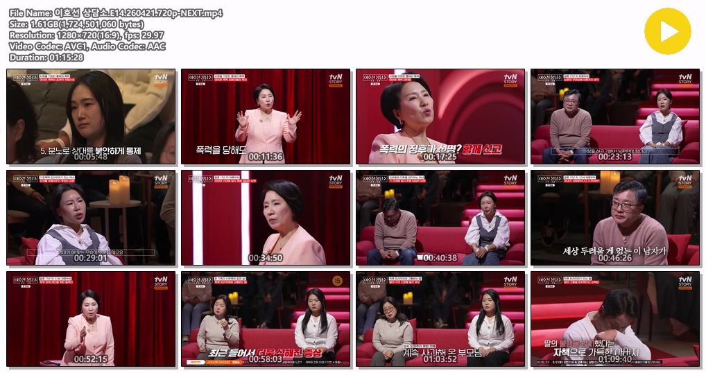cast 동영상 이호선 상담소 E14 이호선 상담소.E14.260421.720p-NEXT personha*** calendar_today2026.04.22 visibility4,327 download 다운로드 1개 파일 folder_zip 이호선 상담소.E14.260421.720p-NEXT.mp4 1.6 GB download