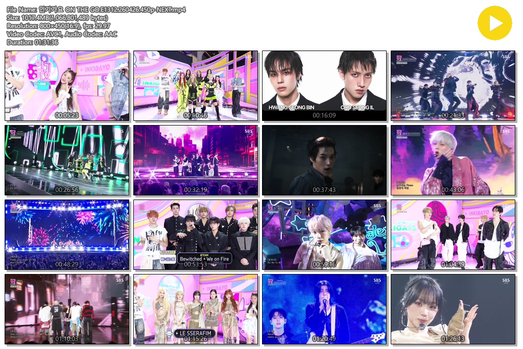 cast 동영상 인기가요 ON THE 인기가요 ON THE GO.E1312.260426.450p-NEXT personse*** calendar_today2026.04.27 visibility4,734 download 다운로드 1개 파일 folder_zip 인기가요 ON THE GO.E1312.260426.450p-NEXT.mp4 1,017 MB download