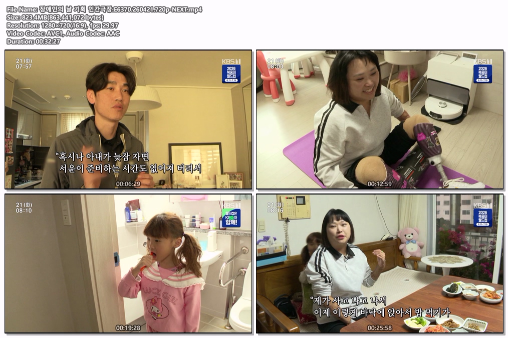 cast 동영상 장애인의 기획 인간극장 장애인의 날 기획 인간극장.E6370.260421.720p-NEXT personhe*** calendar_today2026.04.22 visibility4,455 download 다운로드 1개 파일 folder_zip 장애인의 날 기획 인간극장.E6370.260421.720p-NEXT.mp4 823 MB download