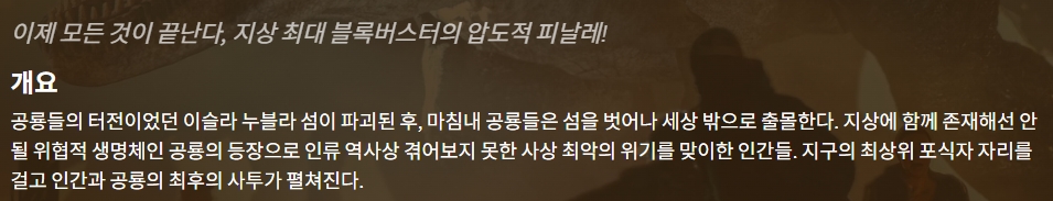 movie 영화 쥬라기 월드 도미니언 쥬라기 월드- 도미니언 "이제 모든 것이 끝난다, 지상 최대 블록버스터의 압도적 피날레!" persongg*** calendar_today2026.04.22 visibility6,490 download 다운로드 2개 파일 folder_zip 쥬라기 월드- 도미니언.mkv 1.7 GB download folder_zip 쥬라기 월드- 도미니언.srt download