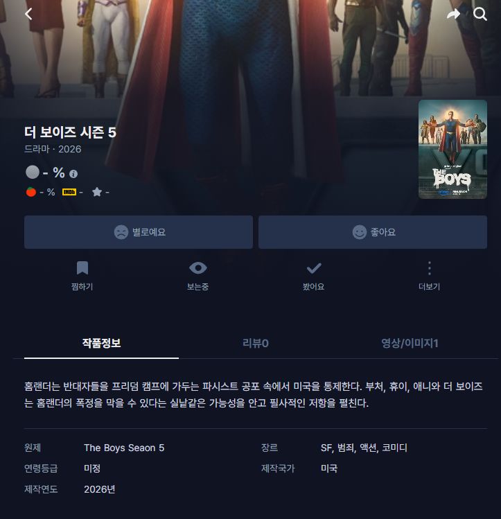 live_tv 드라마 최신작 보이즈 시즌5 [최신작] 더 보이즈 시즌5 - (04화) 한글자막 The Boys 최고화질 person도리*** calendar_today2026.04.22 visibility7,325 download 다운로드 2개 파일 folder_zip The.Boys.S05E04.360p.WEB.h264-JH.mp4 421 MB download folder_zip The.Boys.S05E04.360p.WEB.h264-JH.srt download