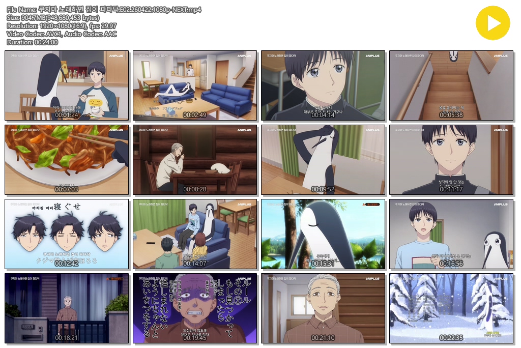 animation 애니 쿠지마 노래하면 집이 쿠지마 노래하면 집이 파다닥.E02.260422.1080p-NEXT personse*** calendar_today2026.04.21 visibility7,996 download 다운로드 1개 파일 folder_zip 쿠지마 노래하면 집이 파다닥.E02.260422.1080p-NEXT.mp4 905 MB download