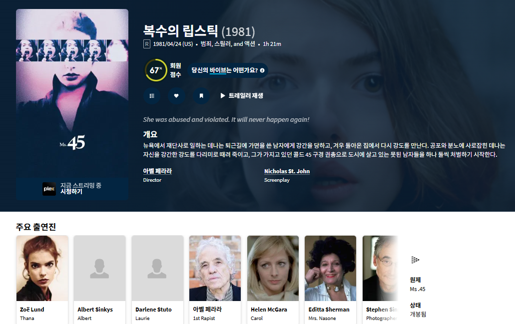 movie 영화 큐레이터 5월 개봉예정 [큐레이터] 5월 개봉예정 박찬욱의 인생영화 [복수의 립스틱] personru*** calendar_today2026.04.23 visibility4,050 download 다운로드 2개 파일 folder_zip Ms.45.1981.1080p.BluRay.x264-HD4U.x264.aac.mp4 1.4 GB download folder_zip Ms.45.1981.1080p.BluRay.x264-HD4U.x264.aac.smi download